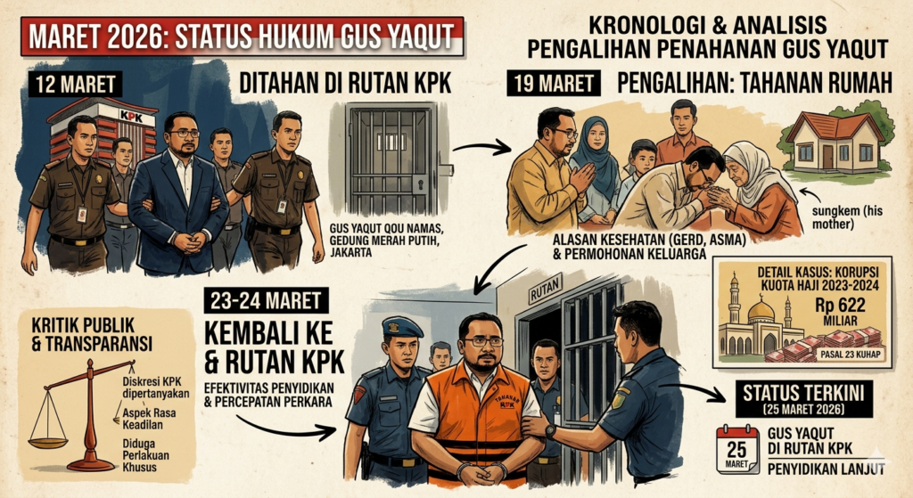 | 24 Maret 2026 | Tahanan Rutan | Gus Yaqut resmi kembali masuk sel di Gedung Merah Putih KPK. |